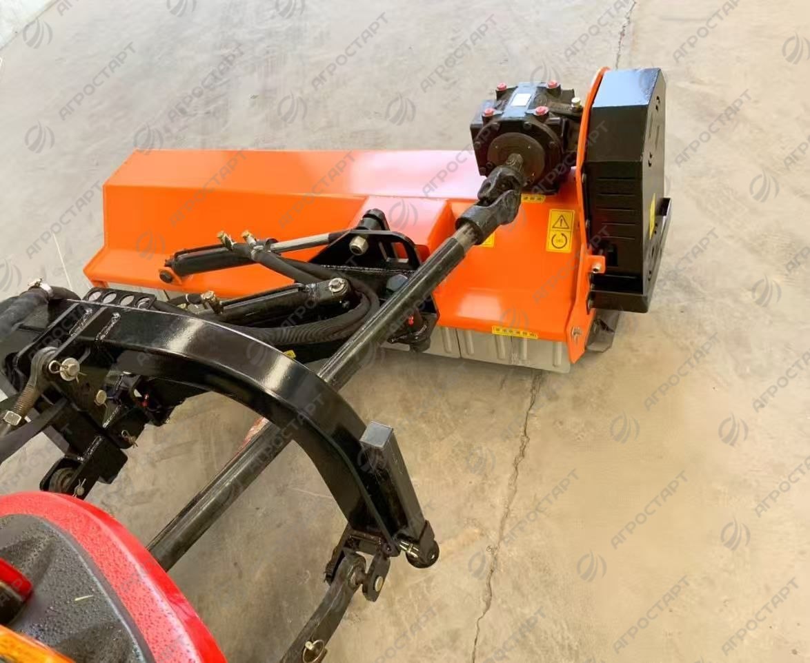 Оборудование подключается к ВОМ трактора, приводя в движение ротор с молотковыми ножами. При вращении ножи измельчают растительность, равномерно распределяя мульчу по поверхности участка.